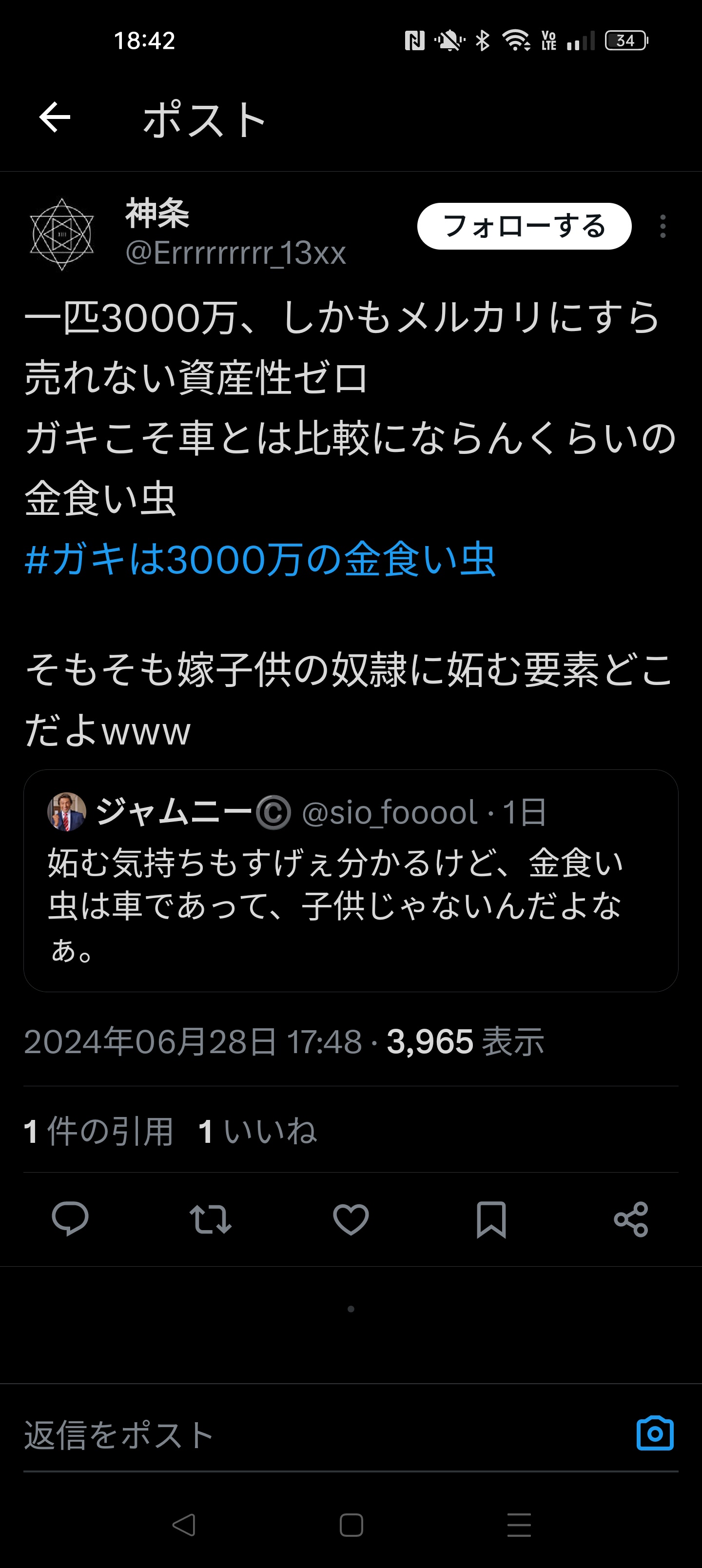 【地獄】22歳で車、家、嫁、子どもを揃えた子に37歳独身がイキって突っかかってしまう…… 2024/6/29 速報 1: こうなったら人として終わりやね document.write(” + ”); 関連記事 document.write(” + ”); 続きを読む ——— Source: アルファルファモザイク 【地獄】22歳で車、家、嫁、子どもを揃えた子に37歳独身がイキって突っかかってしまう……