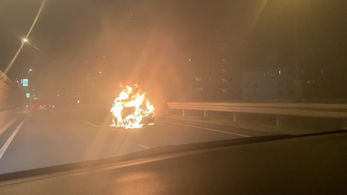 首都高あたり運転してたら車炎上してた、、、こわ😭 pic.twitter.com/Yk0xJSABQN