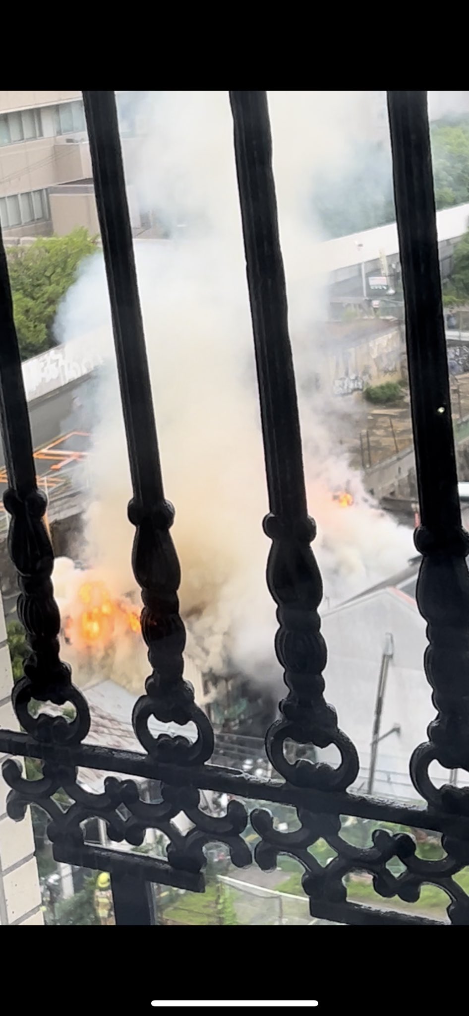今日、大阪の天王寺に泊まってるんだけどホテルの前が今火事だわ