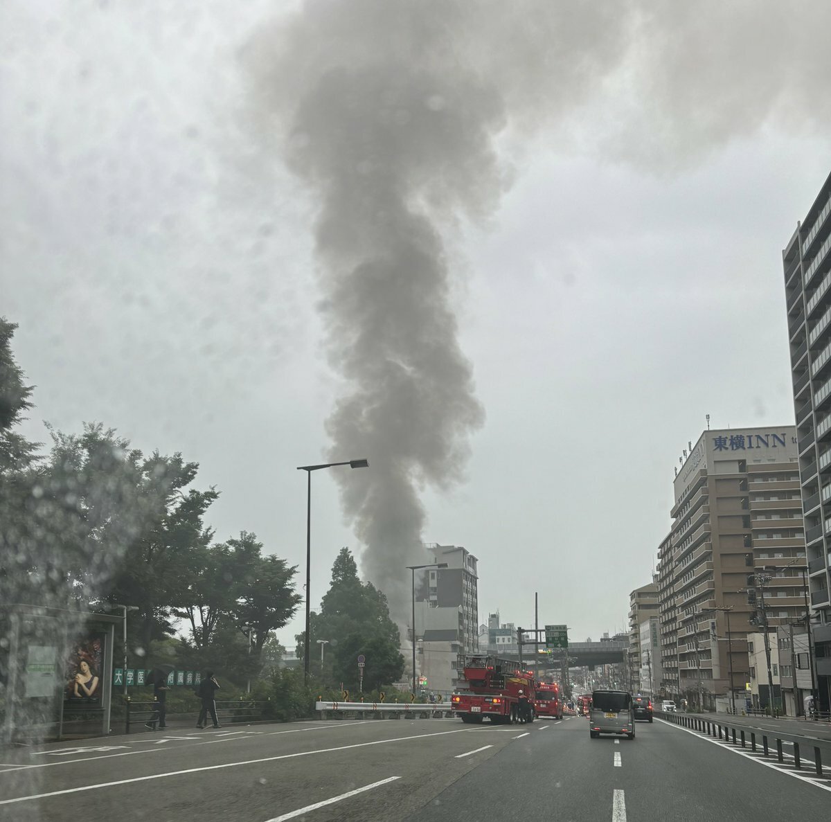 【火事情報】大阪府大阪市西成区山王1丁目 #大阪環状線 天王寺駅西側 大阪公立大学病院近く駐車場付近建物から煙あがる火災6月30日 #大阪 #西成 #天王寺 #阿倍野 #火災