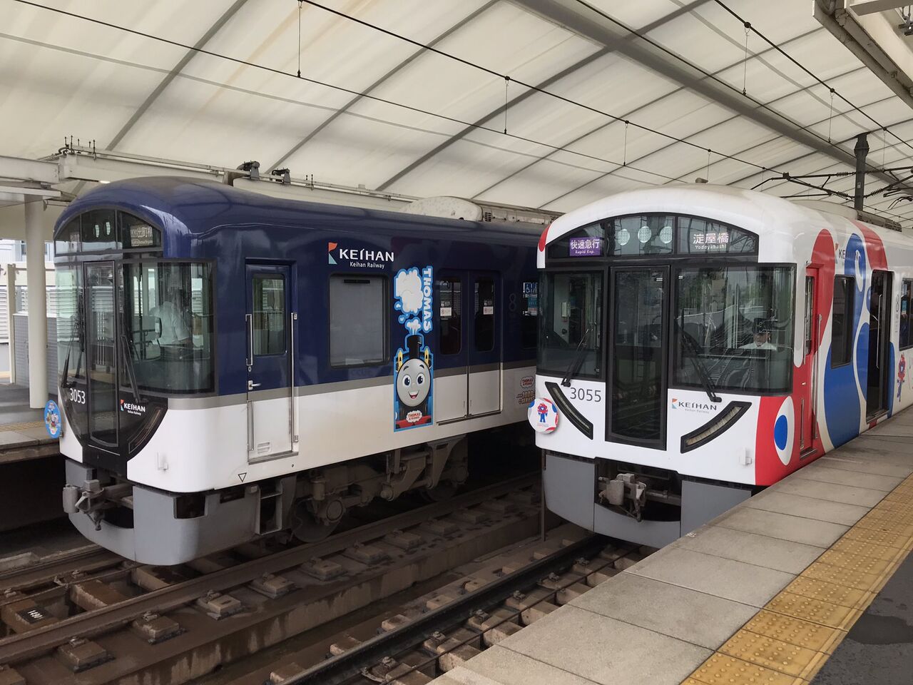 人身事故の影響で、淀でミャクミャクとトーマスが並んだ。 pic.twitter.com/ZTpzYy0Ced