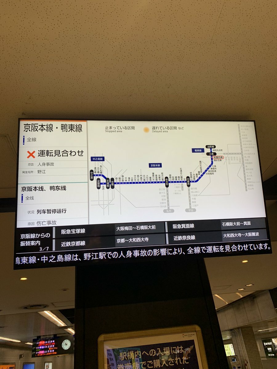 人身事故で運転見合わせで電車止まった🚃お京阪🤣