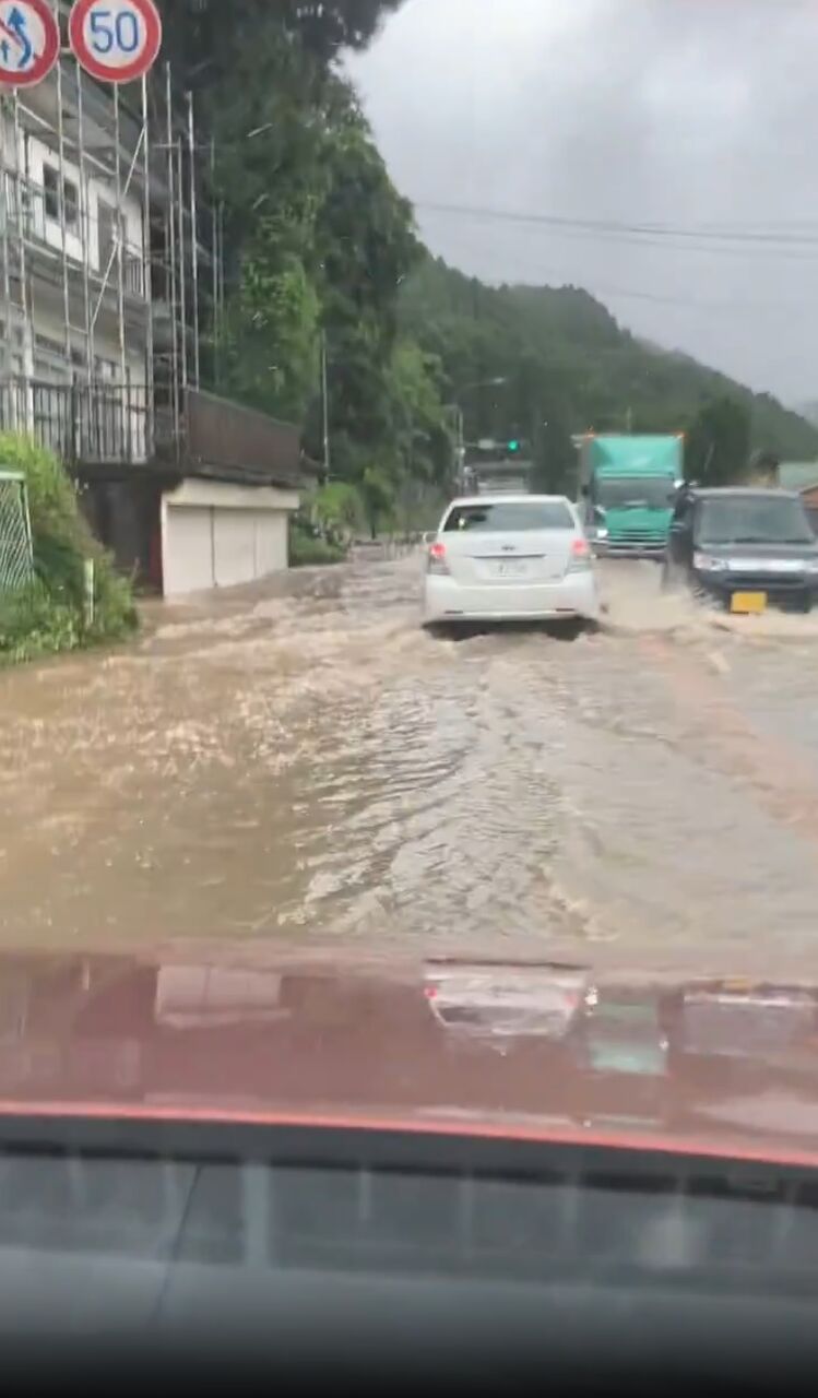 【現場の様子】#交通情報 大雨で道路冠水してる大分県日田市の様子 大分道一部通行止め 国道210号運転注意7月1日 #大分 #日田 #線状降水帯 #大雨警報 #避難指示
