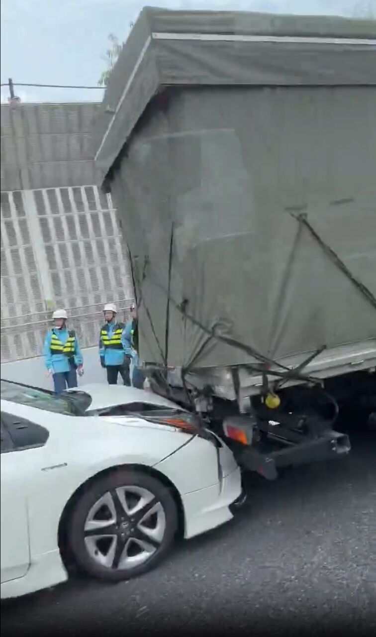 【現場の様子】#交通情報 #中央道 下り 三鷹料金所付近 プリウスとトラック衝突事故で車線規制渋滞7月2日 #渋滞 #三鷹
