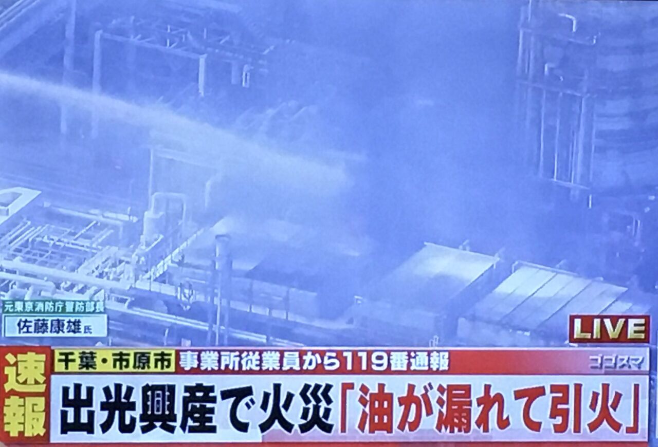 市原市出光の工場で火事、爆発とか有害物質とか大丈夫なのかしら、付近に住んでるから怖いんですけど。 pic.twitter.com/nfvngvwE5d