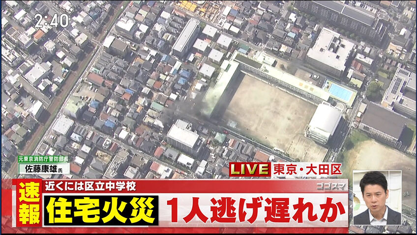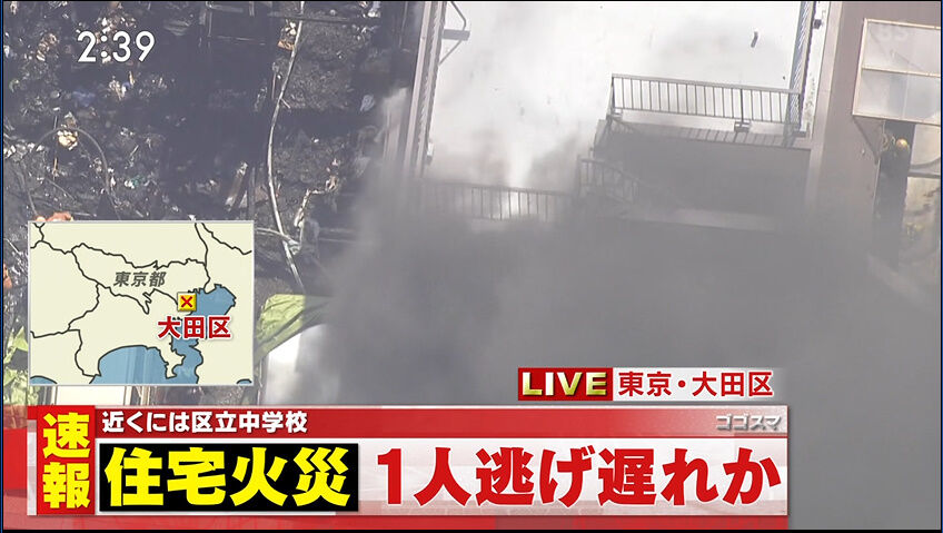 【火事情報】東京都大田区西蒲田2丁目 #東急池上線 池上駅東側付近 住宅街建物から黒煙あがる火災7月3日 #大田区 #蒲田 #火災