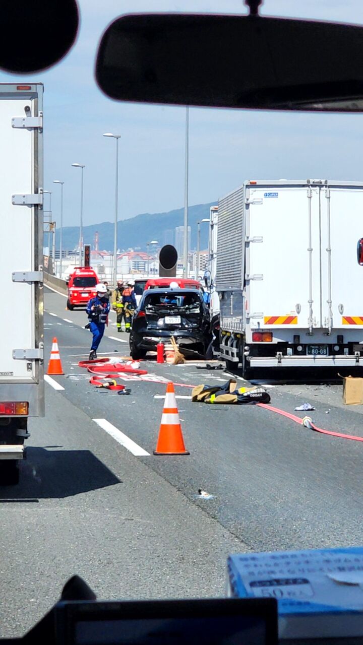 【現場の様子】#交通情報 #阪神高速 5号湾岸線 下り 深江浜付近トラックや乗用車絡む衝突事故で2車線規制渋滞7月4日 #渋滞 #兵庫 #神戸 #大阪