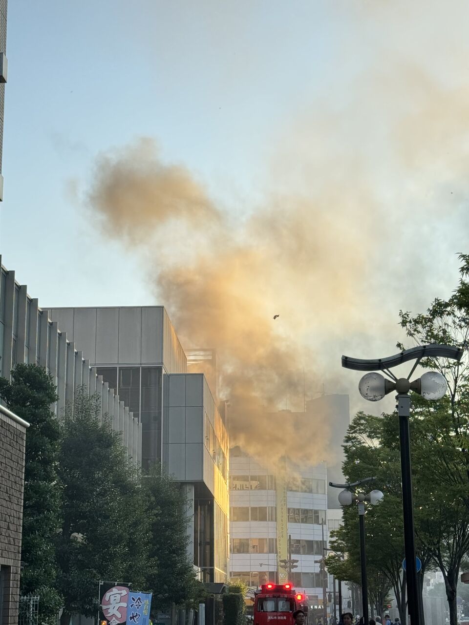 【火事情報】静岡県浜松市中央区中央1丁目付近 集合住宅建物から煙あがる火災 周辺道路渋滞7月4日 #静岡 #浜松 #火災