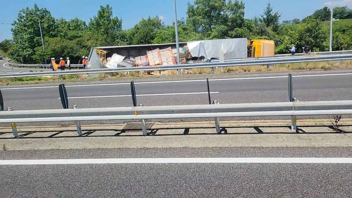 【現場の様子】#交通情報 #東北道 下り 郡山JCT付近 積荷散乱する大型トレーラー横転事故で規制渋滞7月5日 #渋滞 #福島 #郡山