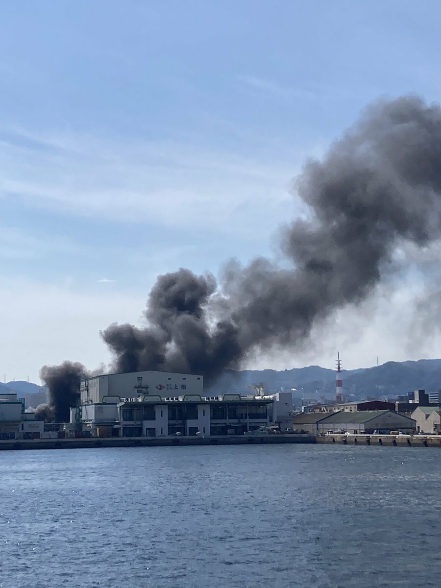 川崎重工の方から煙が。火災か? pic.twitter.com/8rYXSr0rSS