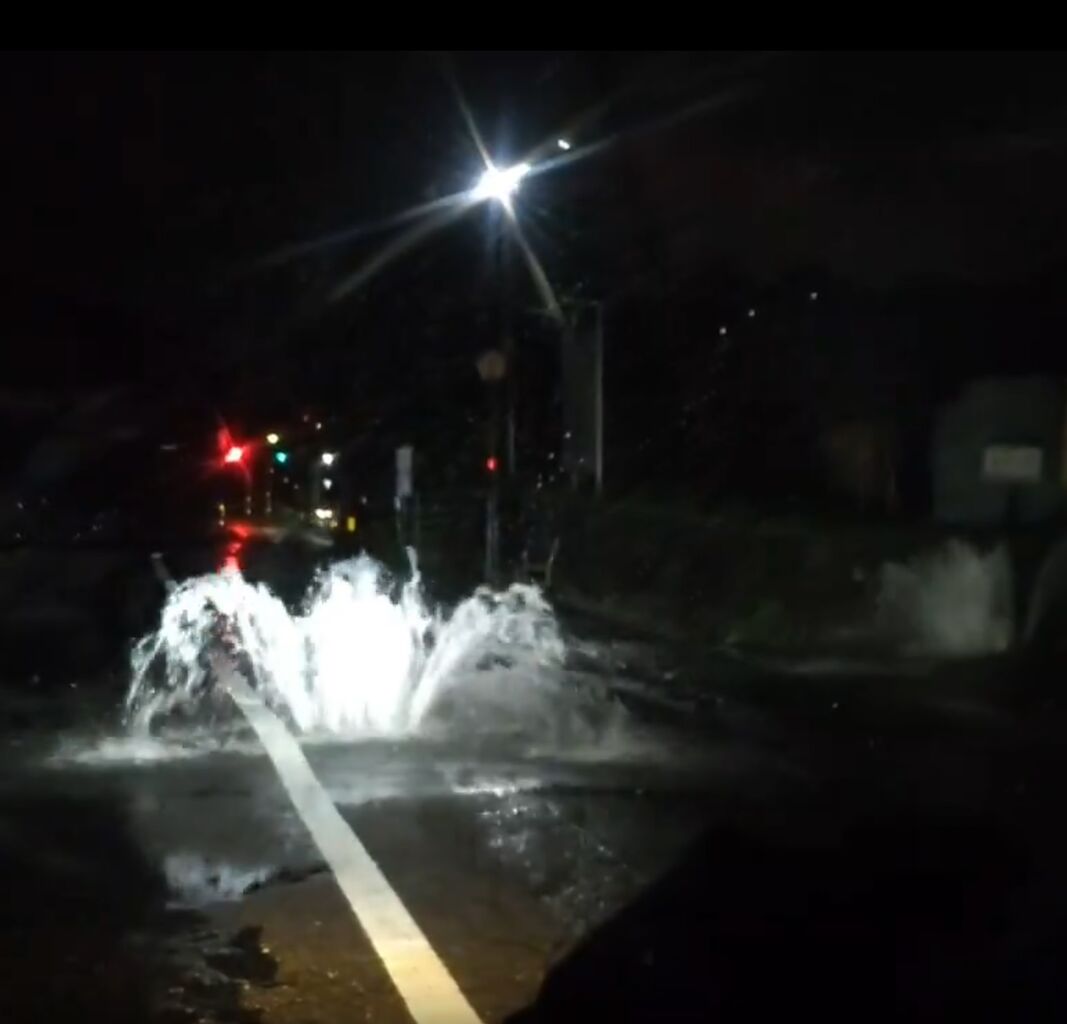 【現場の状況】#交通情報 大雨で道路冠水してる山口県宇部市の様子 宇部駅周辺でマンホールから噴水7月11日 #山口 #宇部 #大雨警報