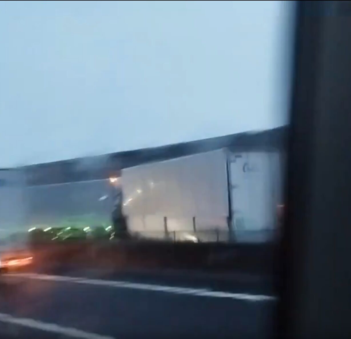 豊明インター付近で大型トラック3台による接触事故発生⚠️