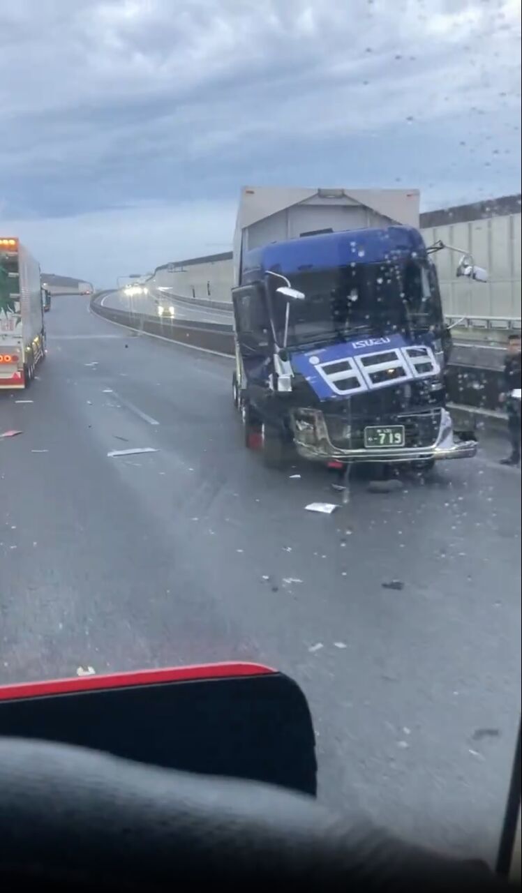 大破したトラックが反対方向に向いているため、このあと通行止になるかも知れません pic.twitter.com/fdGrSOMohL