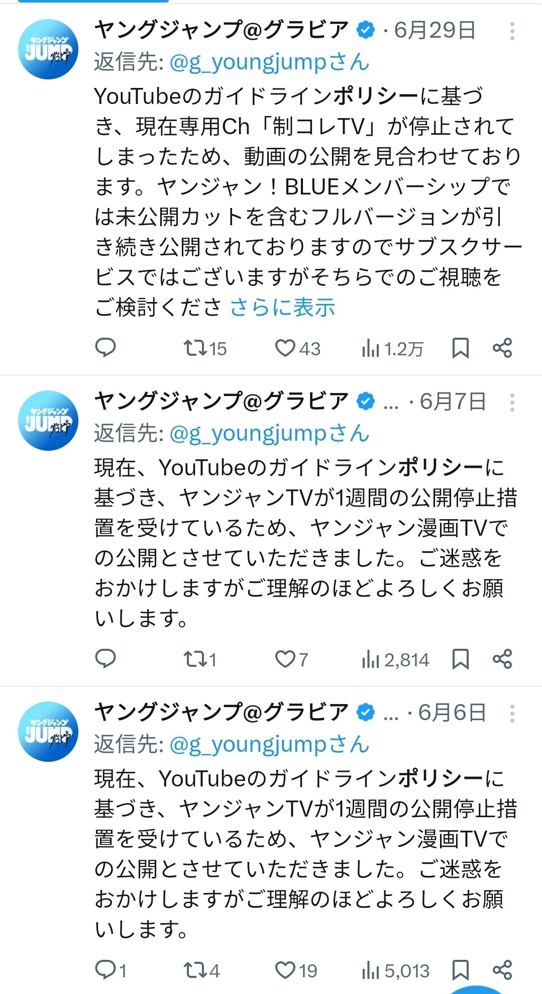 YouTube「女子高生グラビアをやめろ」集英社「ヤダね!JK大好きだもん!」→結果wwww 2024/7/12 速報 1: 2度の公開停止を挟み無事チャンネルBANされた模様 document.write(” + ”); 関連記事 document.write(” + ”); 続きを読む ——— Source: アルファルファモザイク YouTube「女子高生グラビアをやめろ」集英社「ヤダね!JK大好きだもん!」→結果wwww