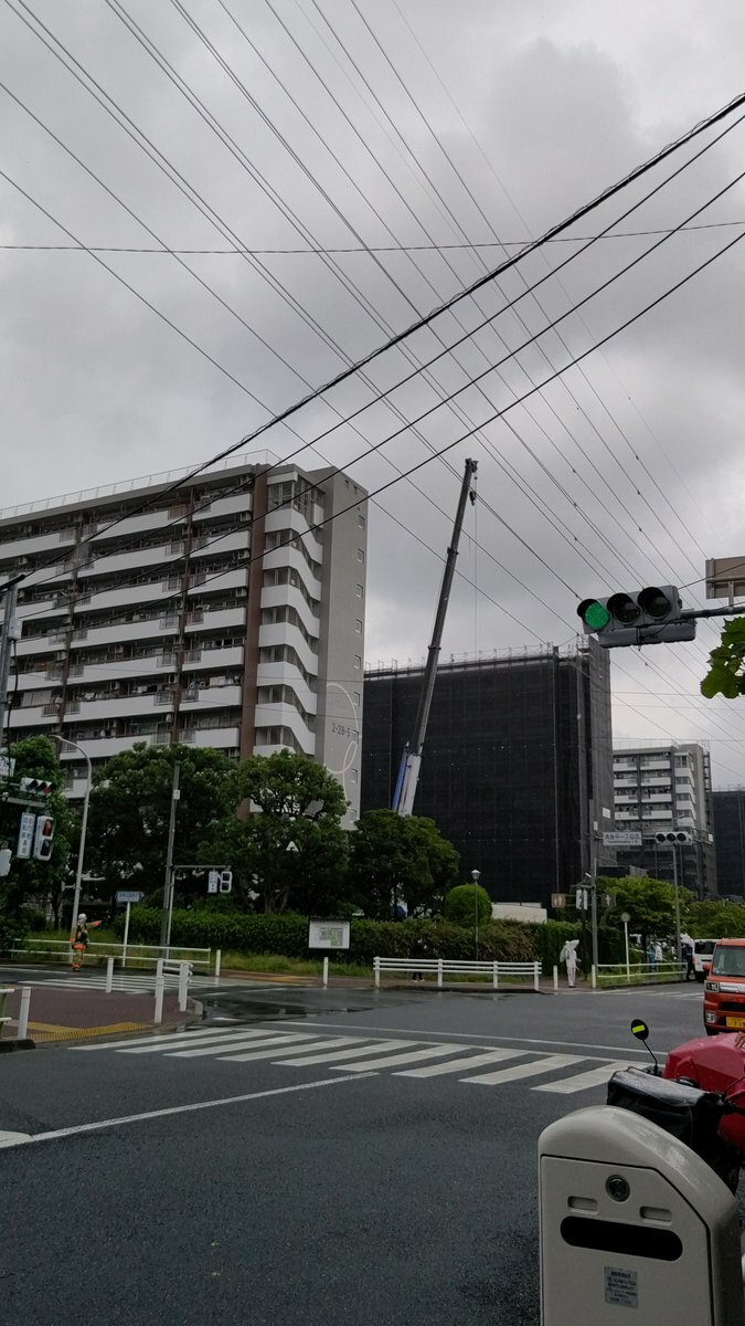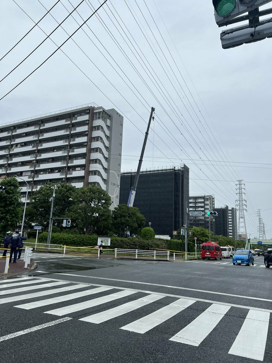 【現場の様子】#交通情報 東京都板橋区高島平2丁目付近 解体工事クレーンが電線に接触し一分停電 周辺区画一時封鎖7月12日 #板橋 #高島平 #停電
