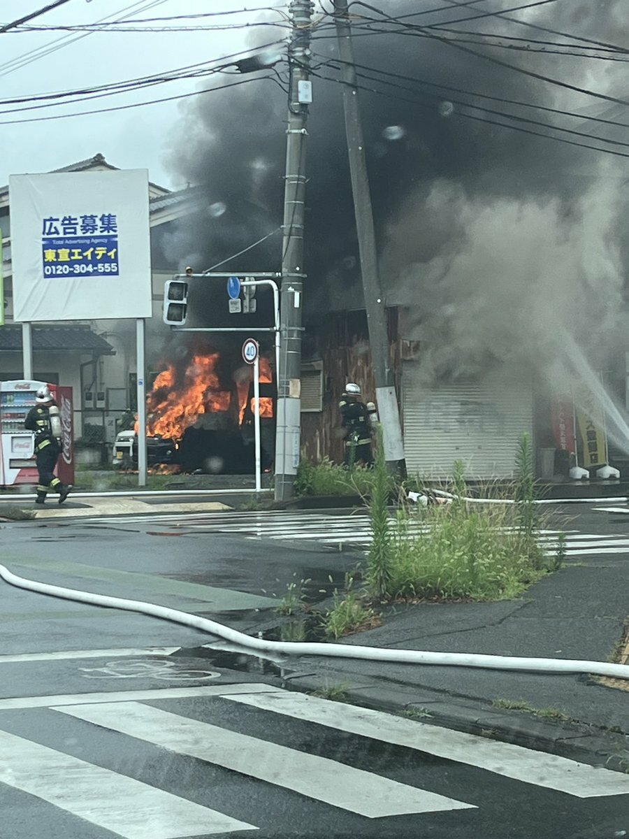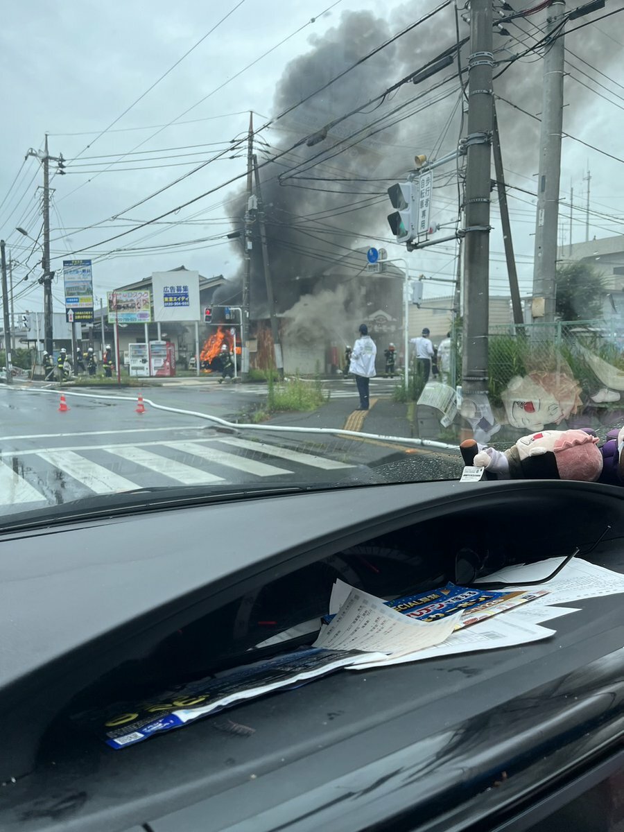 【火事情報】埼玉県春日部市大沼1丁目 春日部警察署南側 大沼公園付近 ステーキ店近く自動車から黒煙あがる車両火災7月12日 #埼玉 #春日部 #大沼 #火災