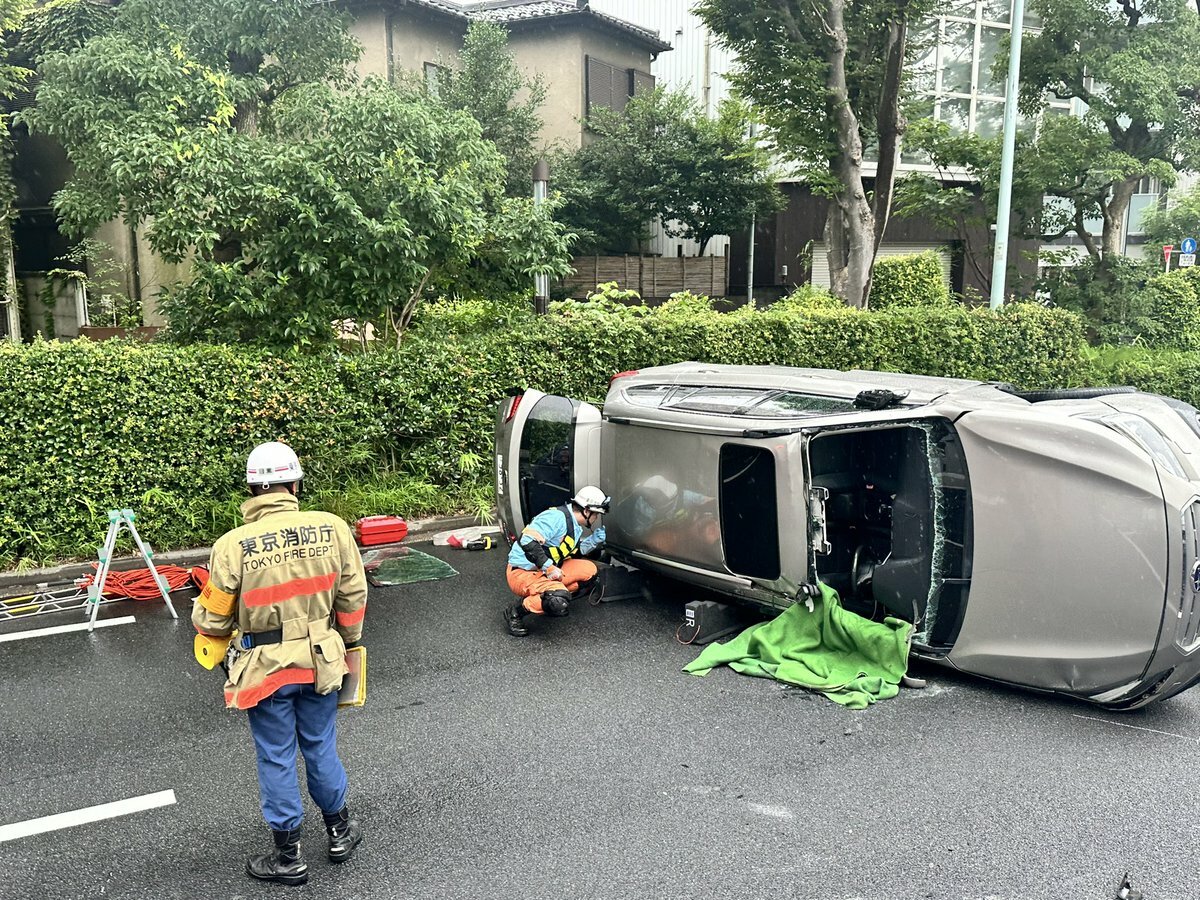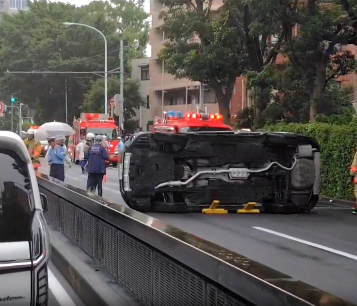 目黒区南付近で、乗用車の横転事故』