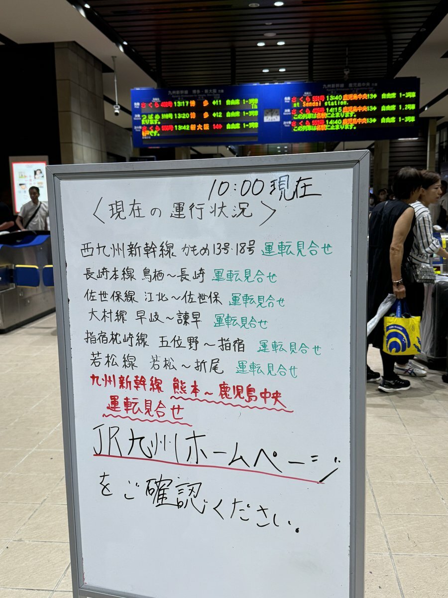 九州新幹線 熊本〜鹿児島中央間で運転見合わせ
