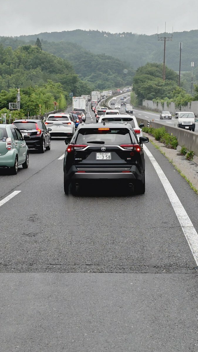 『東北自動車道登り二本松出口出前240kmポスト付近の渋滞はハイエースの単独事故が原因です。雨の中イキったか…?』