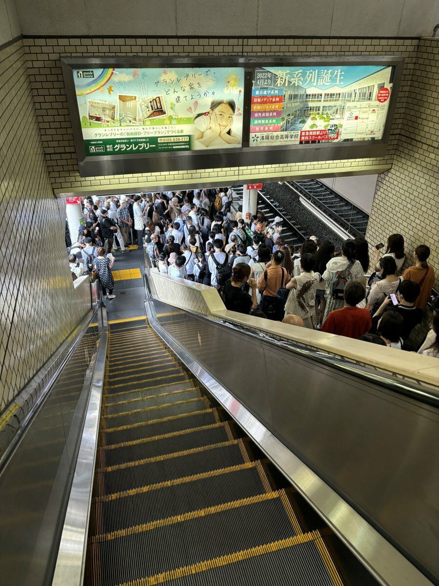 【現場の状況】『祇園祭真っ最中の京都地下鉄が地獄、去年も同じ目にあった』#阪急京都本線 西京極駅で人身事故 #大阪メトロ堺筋線 など遅延7月15日 #阪急電車 #京都 #三連休 #祇園祭