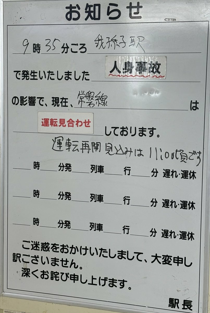 『我孫子駅人身当該、ようやく運転再開!