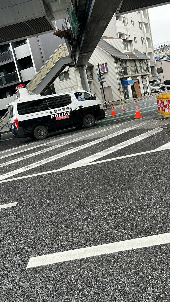 『観音高架上で大破した車がひっくり返っているため観音入り口は通行止めになってます。