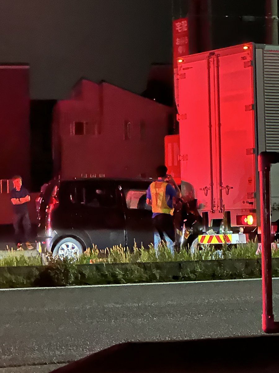 16号岩槻で軽自動車が大型トラックに突っ込んでて上尾方面通行止めなっとるエグい pic.twitter.com/9ZITqL4xGH