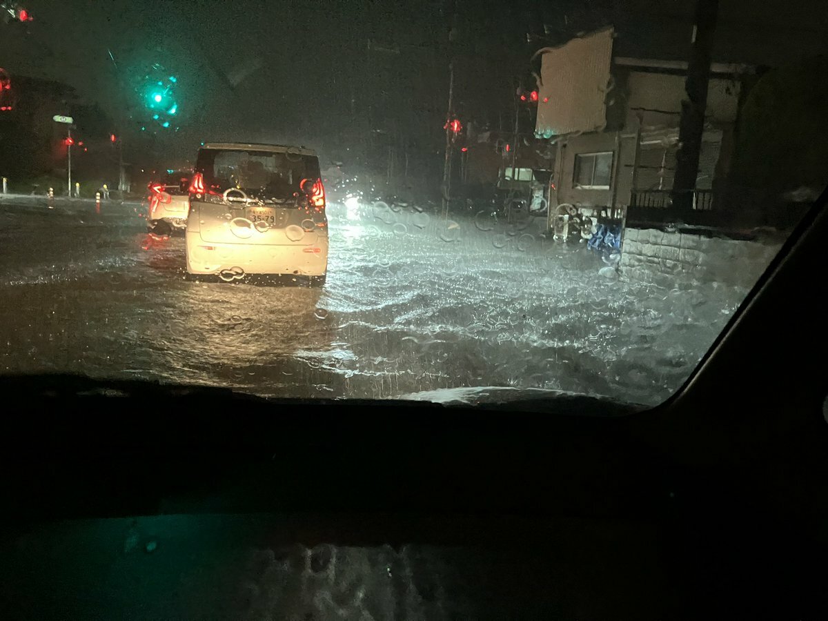 『千葉大前の道路が水没してた。傘持ってこなかったけどもっと最悪なことが起きてた』