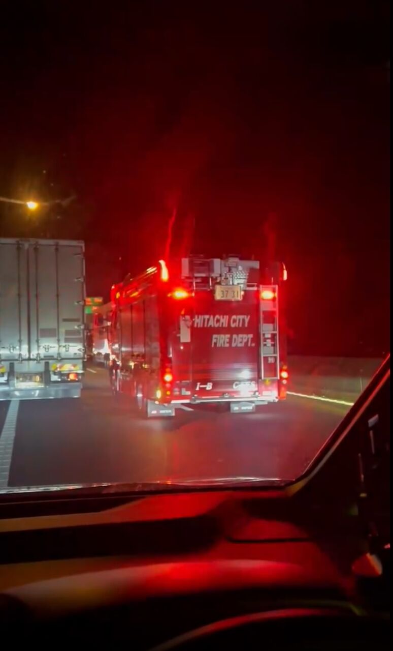 常磐道下りの日立中央の手前のトンネルでトラックの単独事故(?)があって、一車線塞いでたんだけど、その後日立中央で休んでたら何度も救急車の音が聞こえる…。