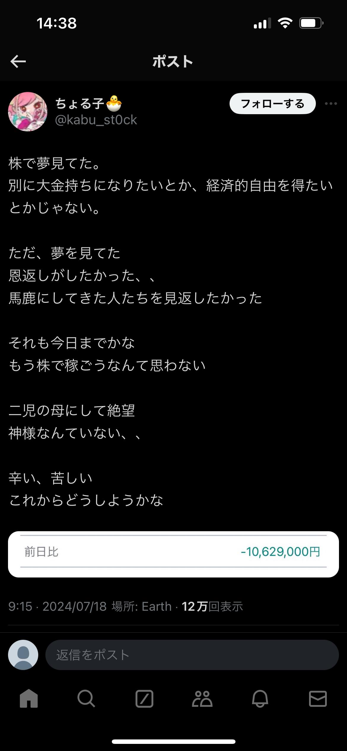 【地獄】二児の母、半導体株の大暴落で逝く。。。 2024/7/18 速報 1: https://www.nikkei.com/article/DGXZQOUB180KH0Y4A710C2000000/ 日経平均株価、一時900円安 半導体株が世界で急落 document.write(” + ”); 関連記事 document.write(” + ”); 続きを読む ——— Source: アルファルファモザイク 【地獄】二児の母、半導体株の大暴落で逝く。。。