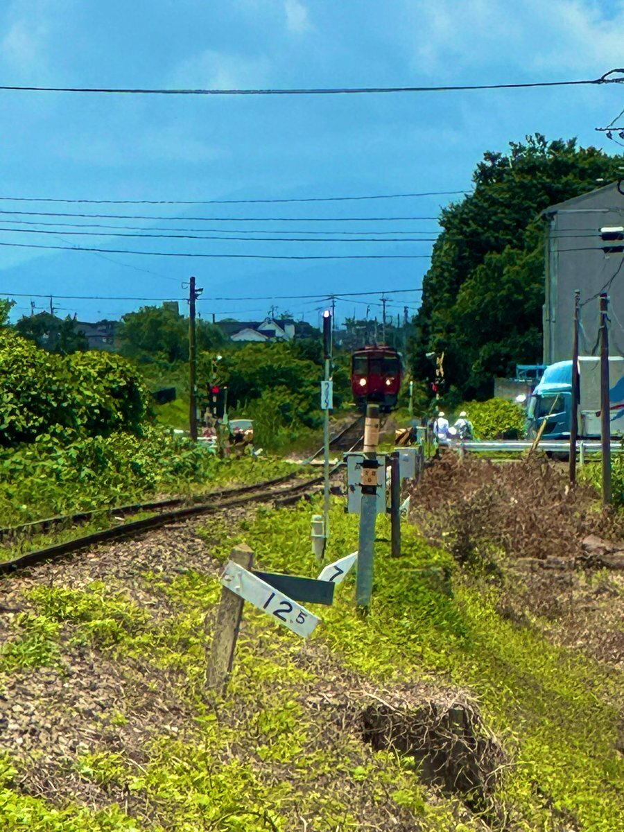 【現場の状況】『踏切手前で列車止まってる』#久大本線 田主丸駅〜筑後吉井駅 #特急ゆふ など遅延7月19日 #福岡 #JR九州