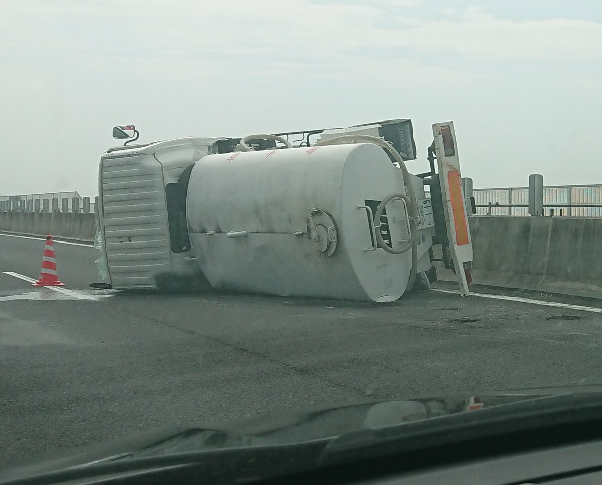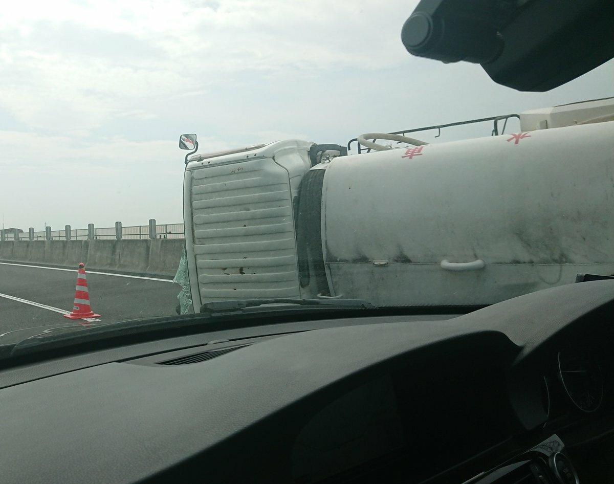 『圏央道外回り幸手付近で、トラック横転事故発生につき渋滞が、だいぶ伸びてます』