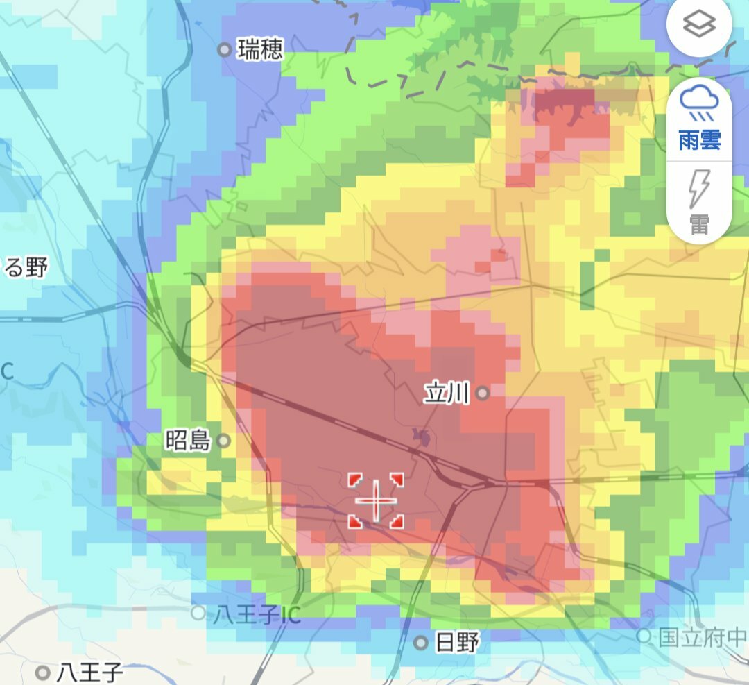立川駅周辺は大雨と雷です