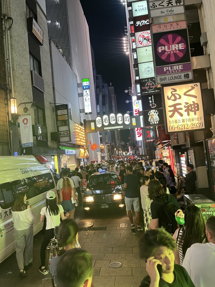 【目撃証言】『キャッチ同士ブレイキングダウン→催涙スプレー』#注意喚起 大阪市中央区宗右衛門町ファミマ付近に警察消防救急車出動一部規制騒ぎ7月21日 #大阪 #難波 #ミナミ #心斎橋