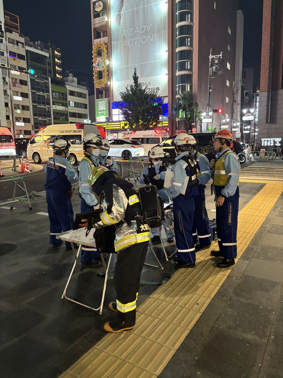心斎橋にありえない量の消防車と救急車がおるよ!