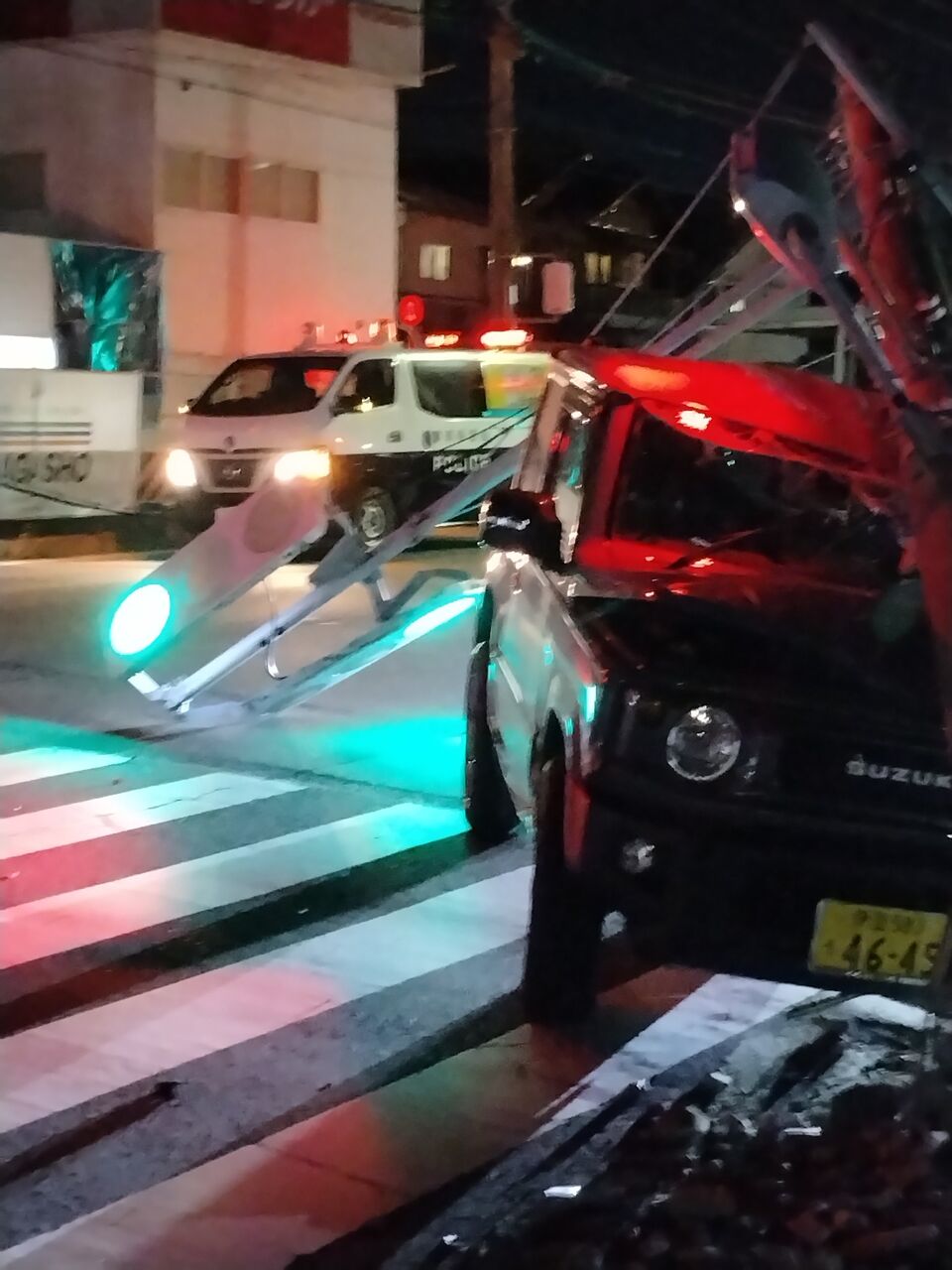 『「ゆう遊空間三島青木店」で麻雀格闘倶楽部打ち終わったんで帰ろうとしたら、目の前の国道136号線で車が信号機に衝突して信号が落下してしまうという事故を目撃してしまった。』
