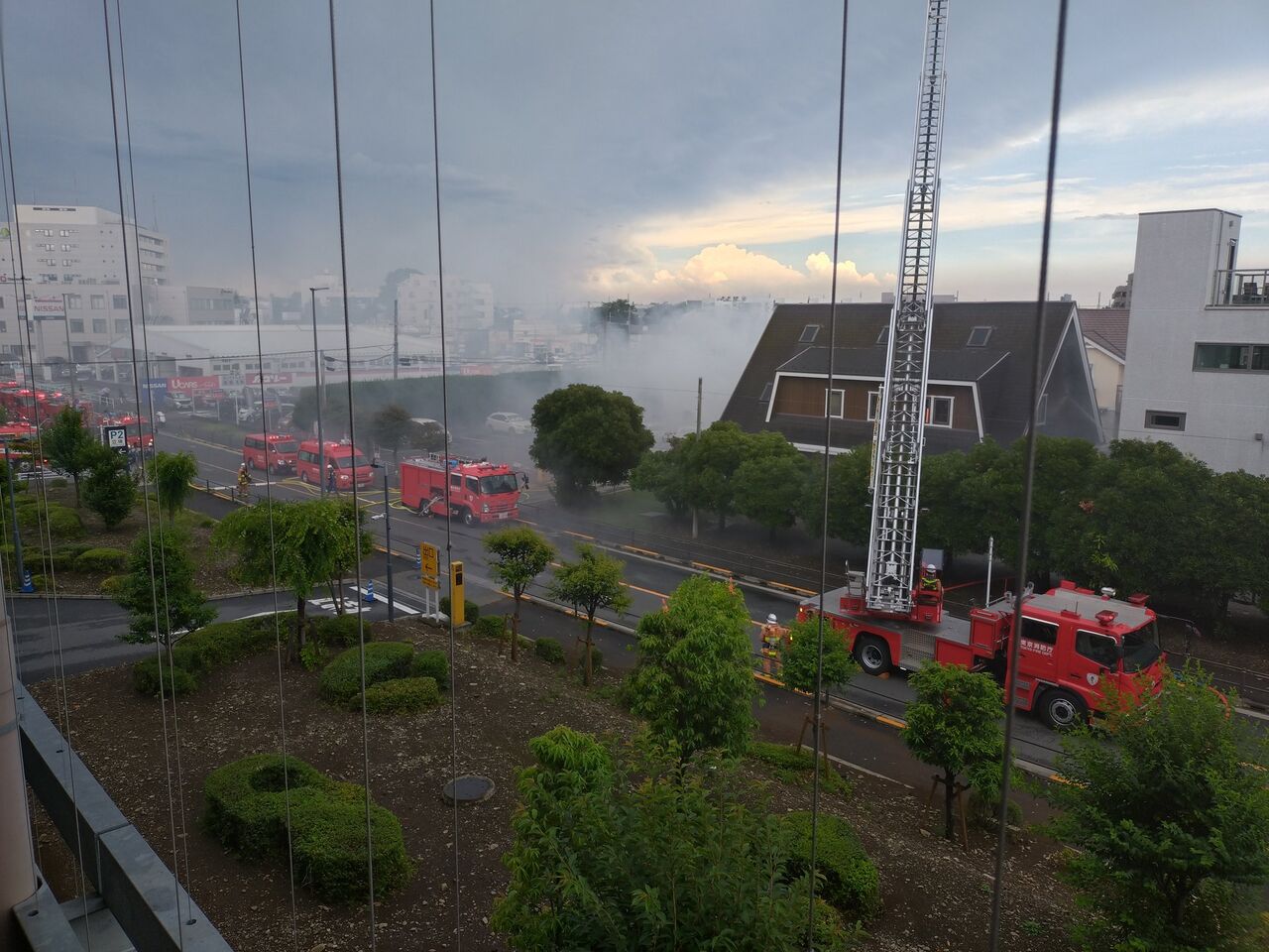 目の前の住宅展示場にカミナリ落ちて燃えている🔥in立川