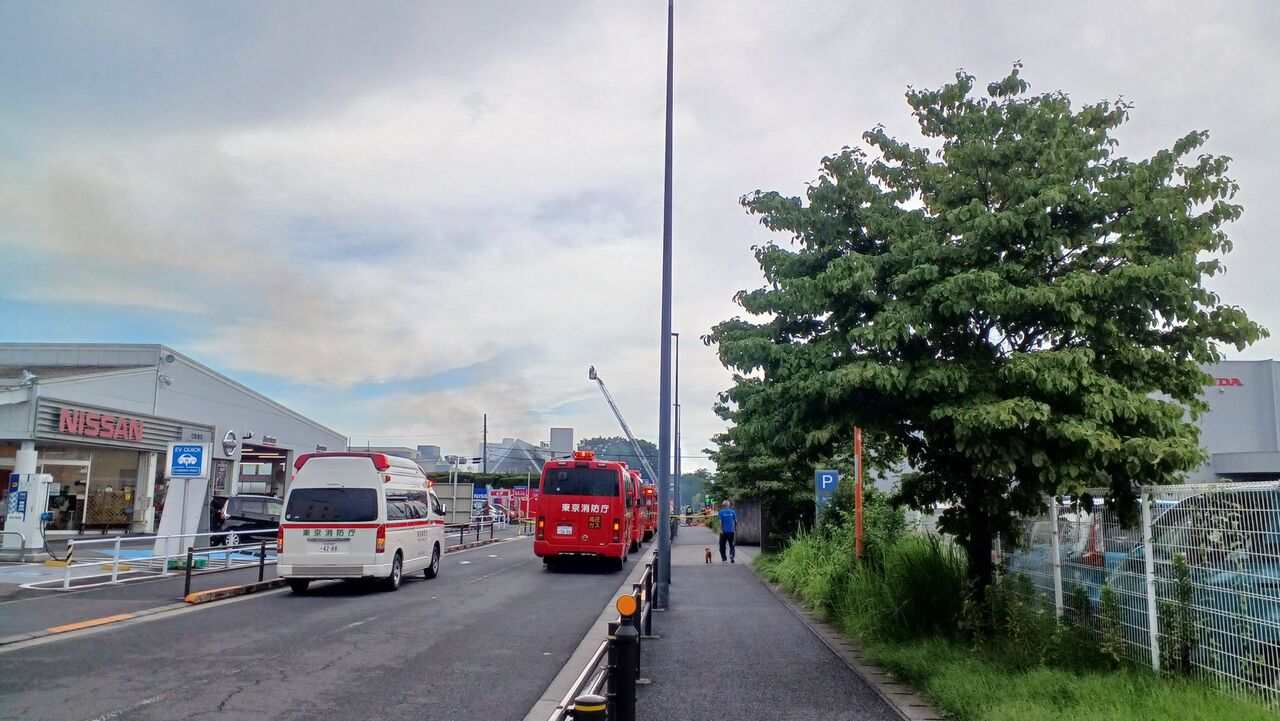【火事情報】東京都立川市泉町 #多摩モノレール 立飛駅東側ららぽーと立川立飛付近 住宅展示場から煙あがる火災 落雷の影響か7月24日 #立川 #火災