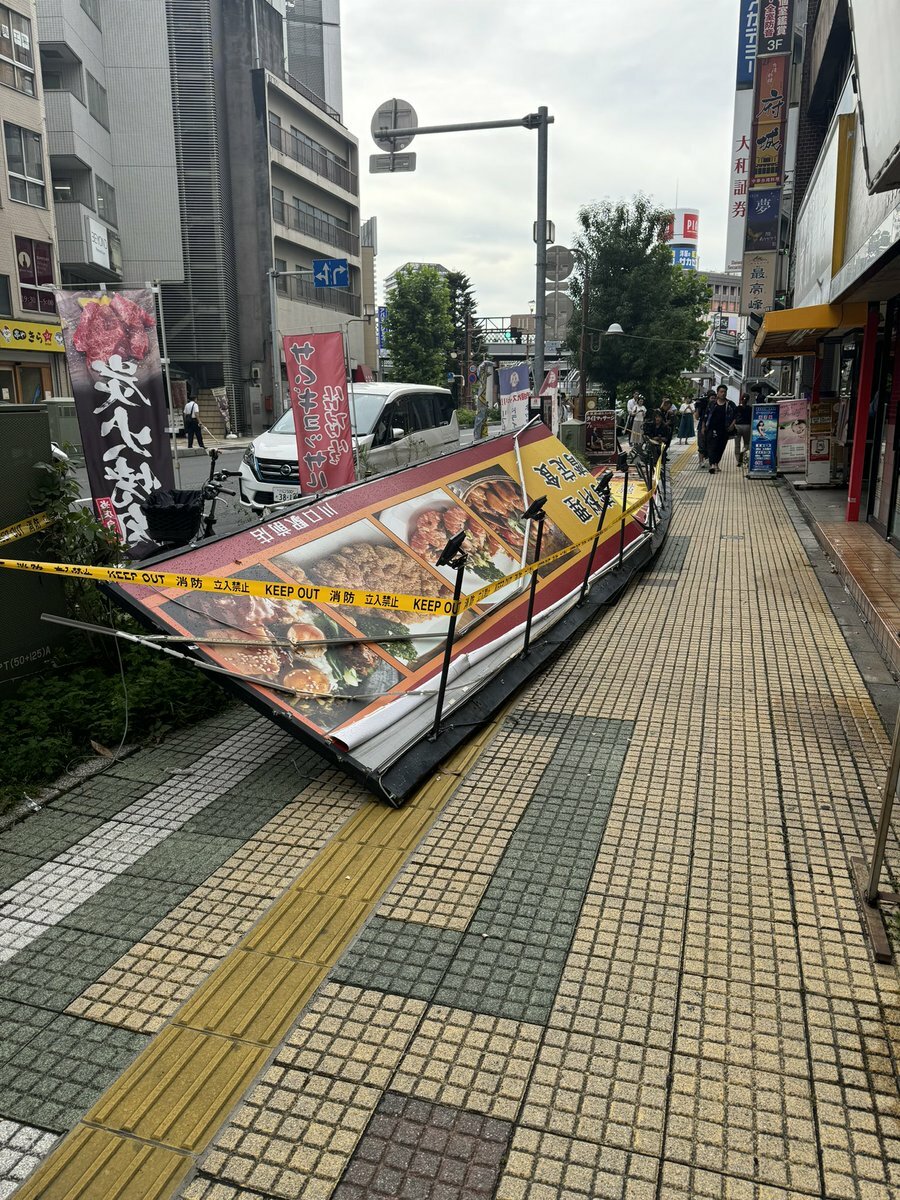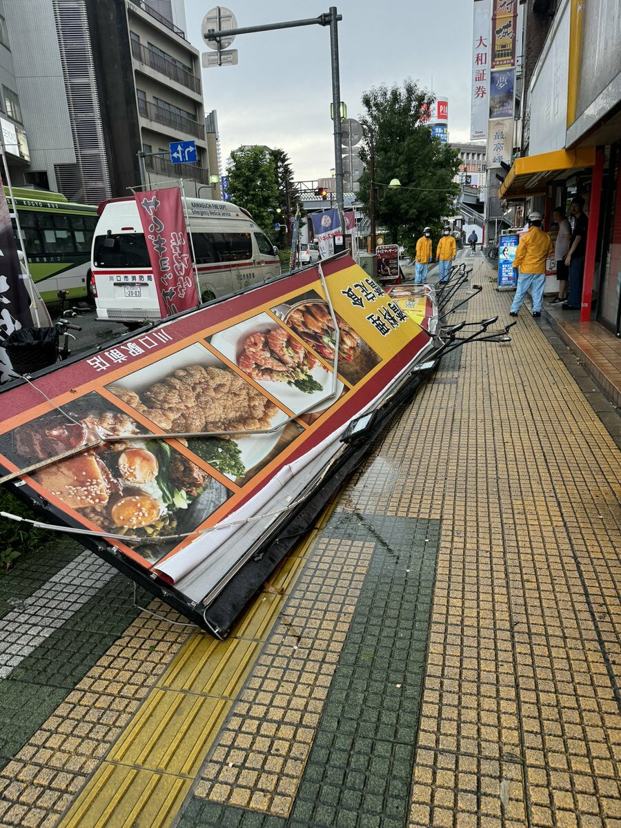 【現場の様子】#注意喚起 #京浜東北線 川口駅東口付近 ゲリラ豪雨&暴風雨で看板落下事故 怪我人1人7月24日 #埼玉 #川口 #強風 #雷雨