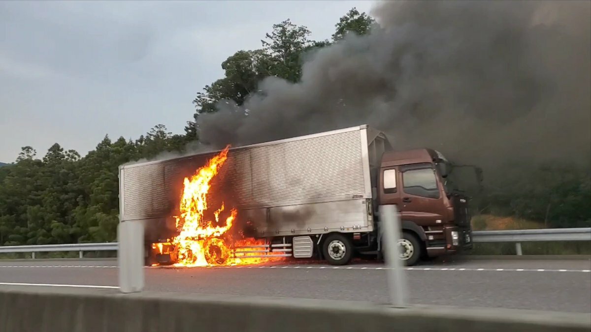 『新東名高速道路トラック燃えとる』