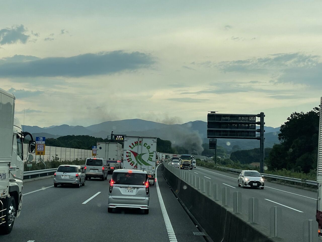 【現場の様子】#交通情報 #新東名 上り 岡崎東IC→新城IC付近 トラック燃える車両火災事故で一時通行止め7月25日 #渋滞 #愛知 #火災 #東名