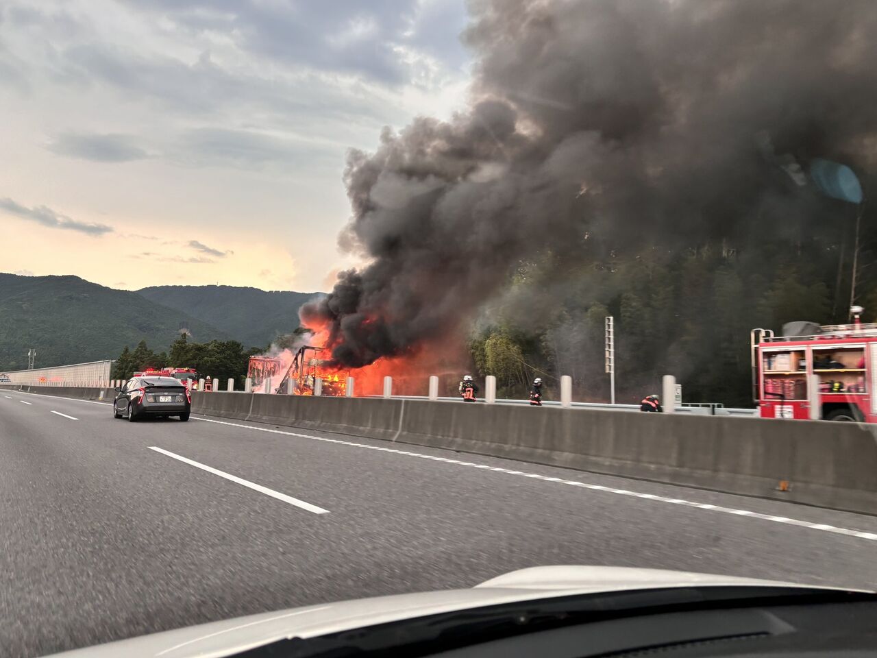 新東名高速道路トラック燃えとる pic.twitter.com/qyY7EmSBLQ