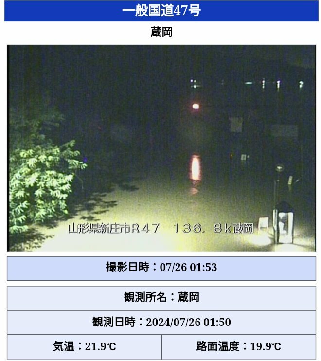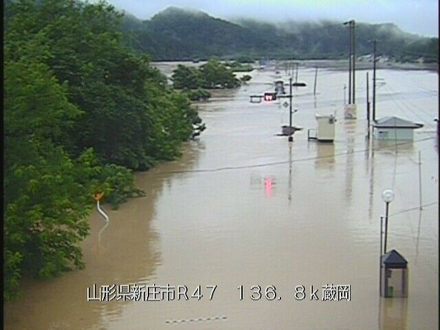 国道47号のライブカメラ、蔵岡もだけど猪ノ鼻も越水してたりする?#最上川