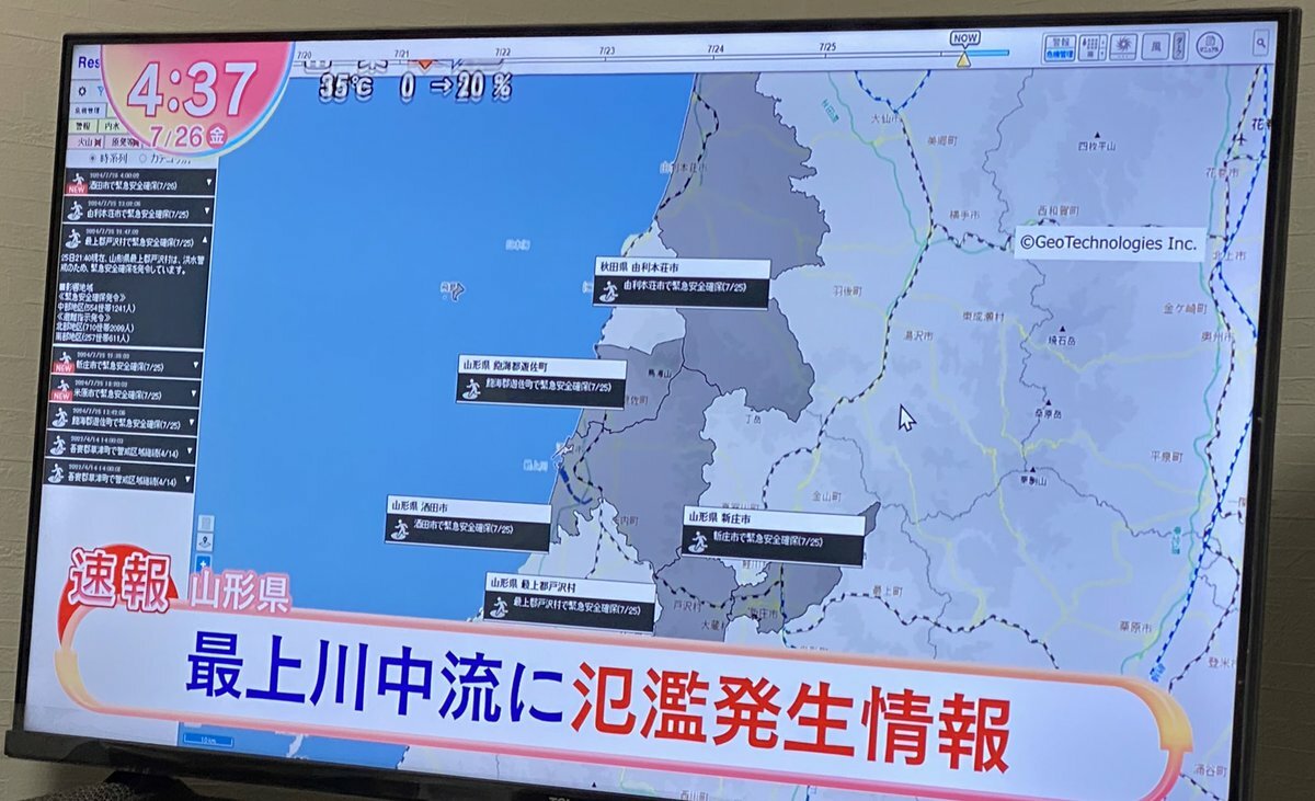山形県酒田市の15,082世帯25,871人に緊急安全確保、27,370世帯69,160人に避難指示が発令されています。 pic.twitter.com/p4mU6AU8iW— 特務機関NERV (@UN_NERV) July 25, 2024
