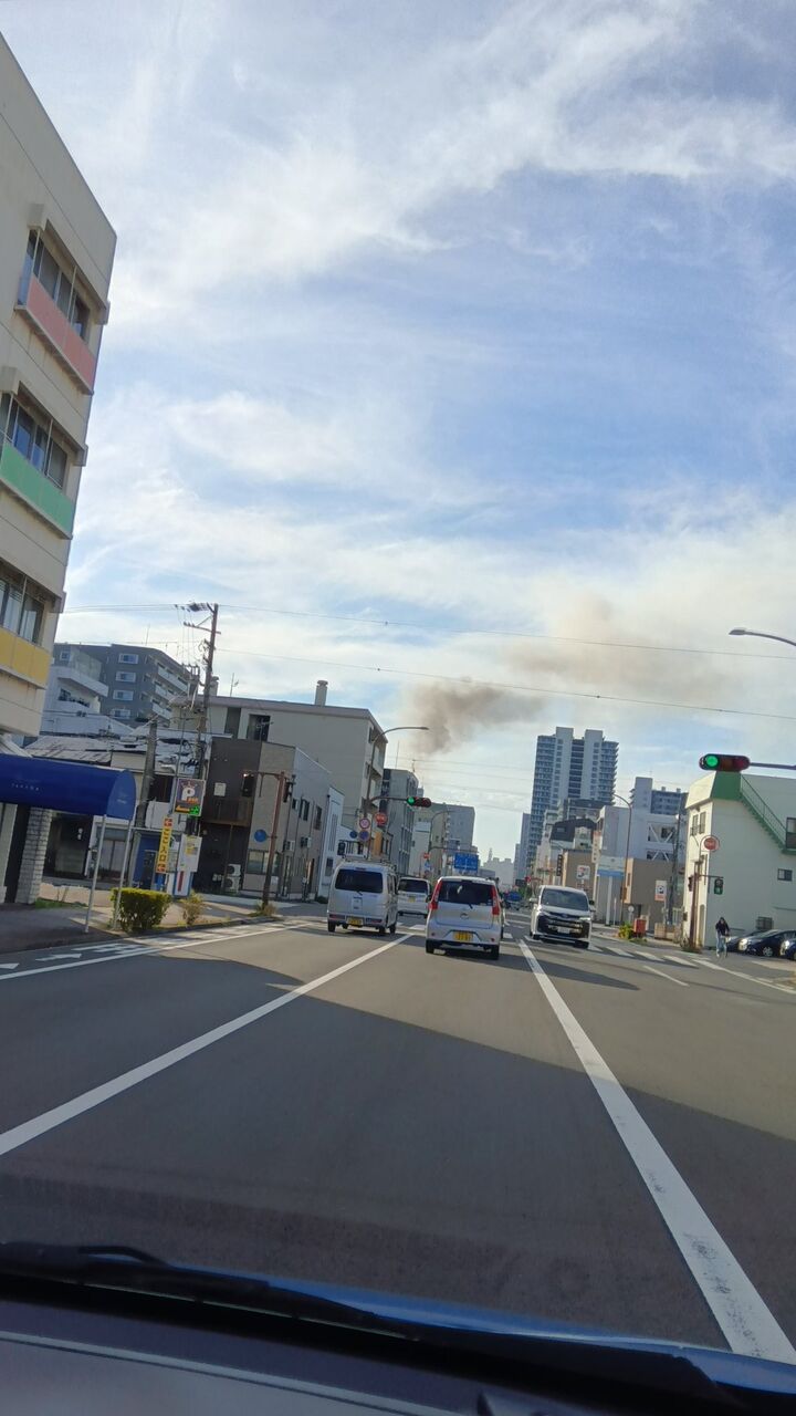 静岡駅降りたら朝から消防車が何台も走ってて、駅出た瞬間から焦げ臭かったからまさか……と思ったら駅近くの建物から凄い煙が出てた😨
