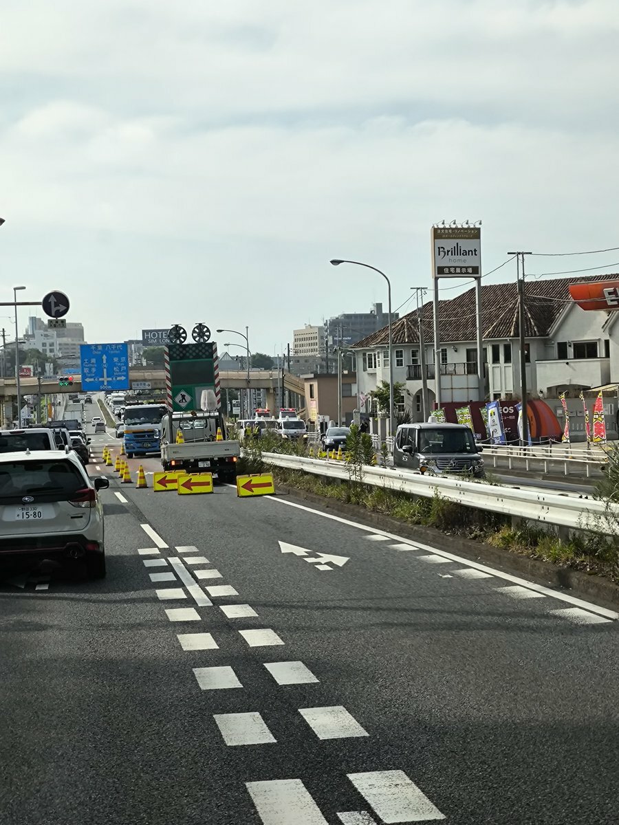【現場の様子】#交通情報 #国道16号 千葉県柏市松ケ崎 柏警察署前交差点付近 工事関係者がはねられる事故で規制渋滞7月26日 #渋滞 #千葉 #柏