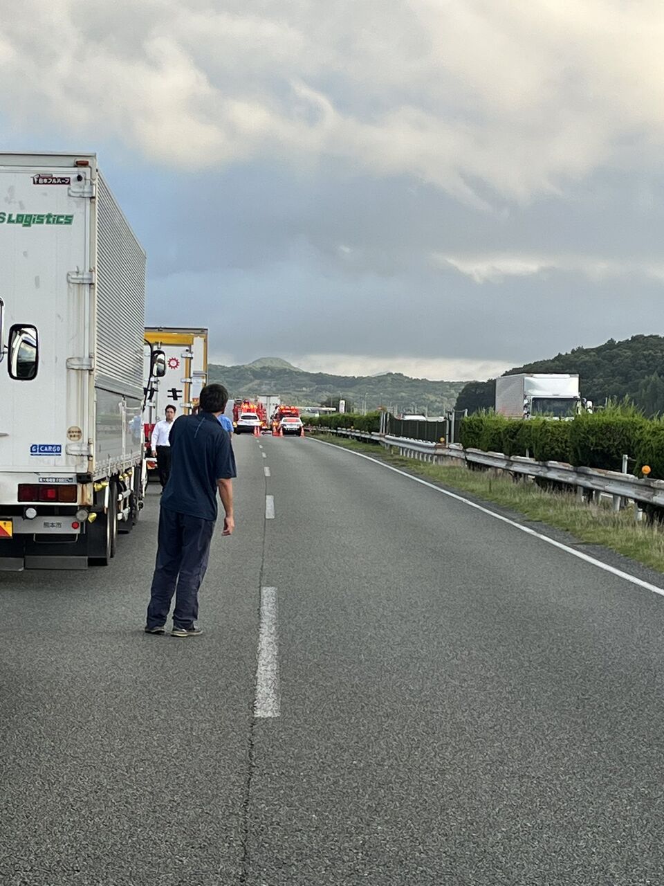 【現場の様子】#交通情報 #九州道 上り 熊本IC〜植木IC付近 車線塞ぐトラック事故で通行止め渋滞 下道の57号線なども渋滞7月30日 #渋滞 #通行止 #熊本 #九州