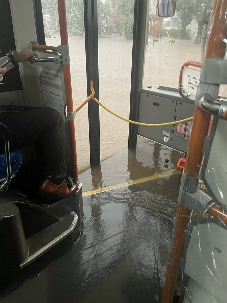 【現場の状況】#交通情報 大雨で道路冠水してる東京都板橋区の様子 高島平駅周辺が水没 バス車内も浸水7月31日 #板橋 #記録的短時間大雨情報