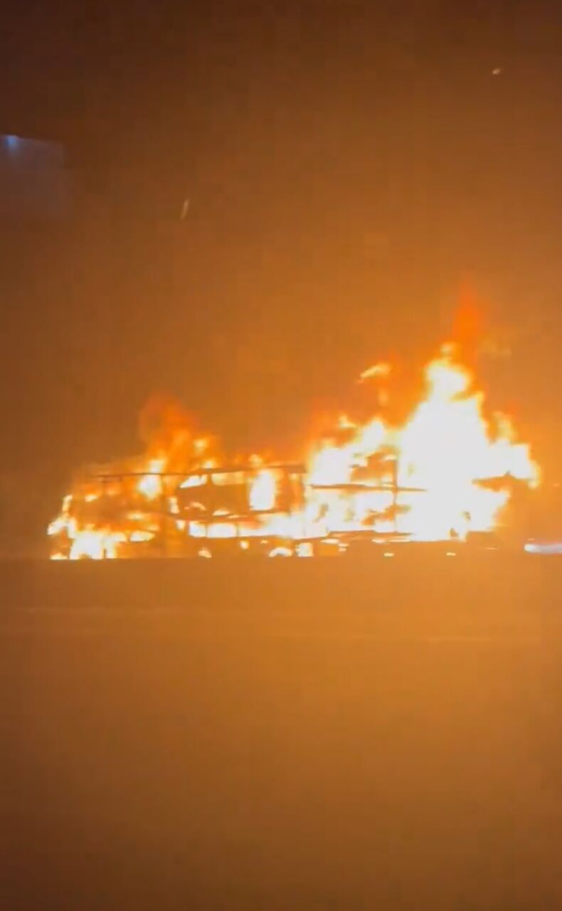 新東名下り遠州森町手前でキャリアカー燃えてる😳