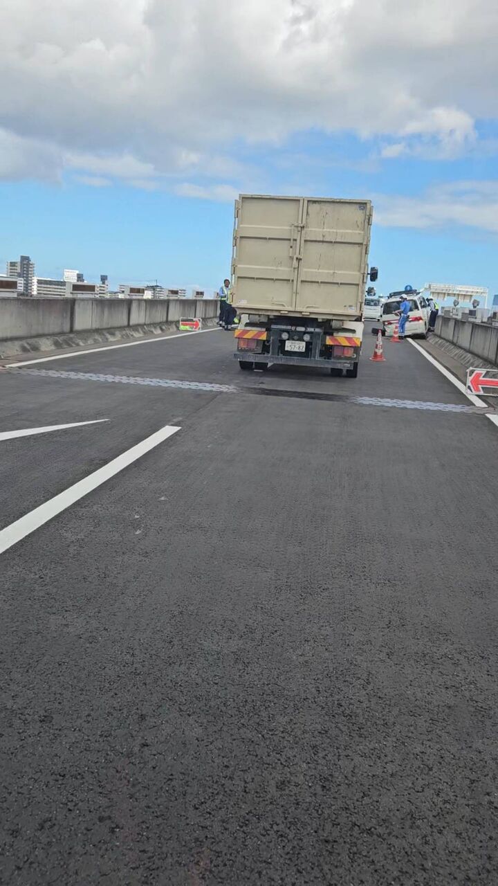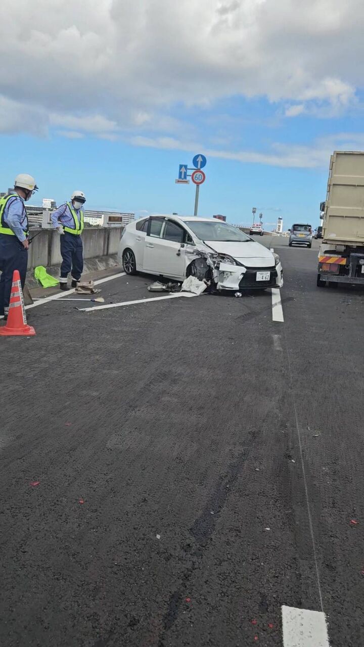 【現場の様子】#交通情報 #福岡都市高速 環状線 内回り 月隈JCT付近 プリウスと普通自動車絡む衝突事故で車線規制渋滞8月1日 #渋滞 #福岡 #大宰府